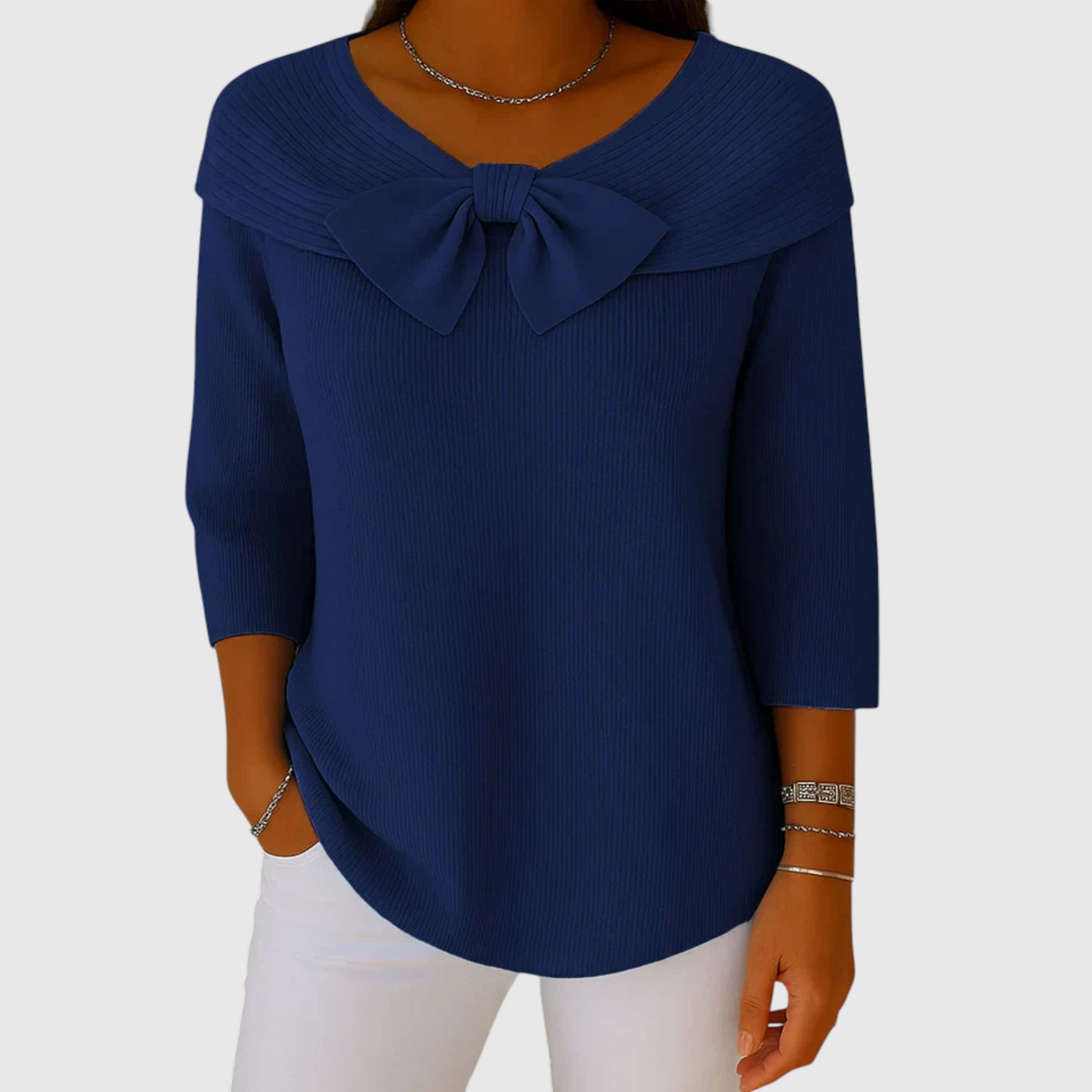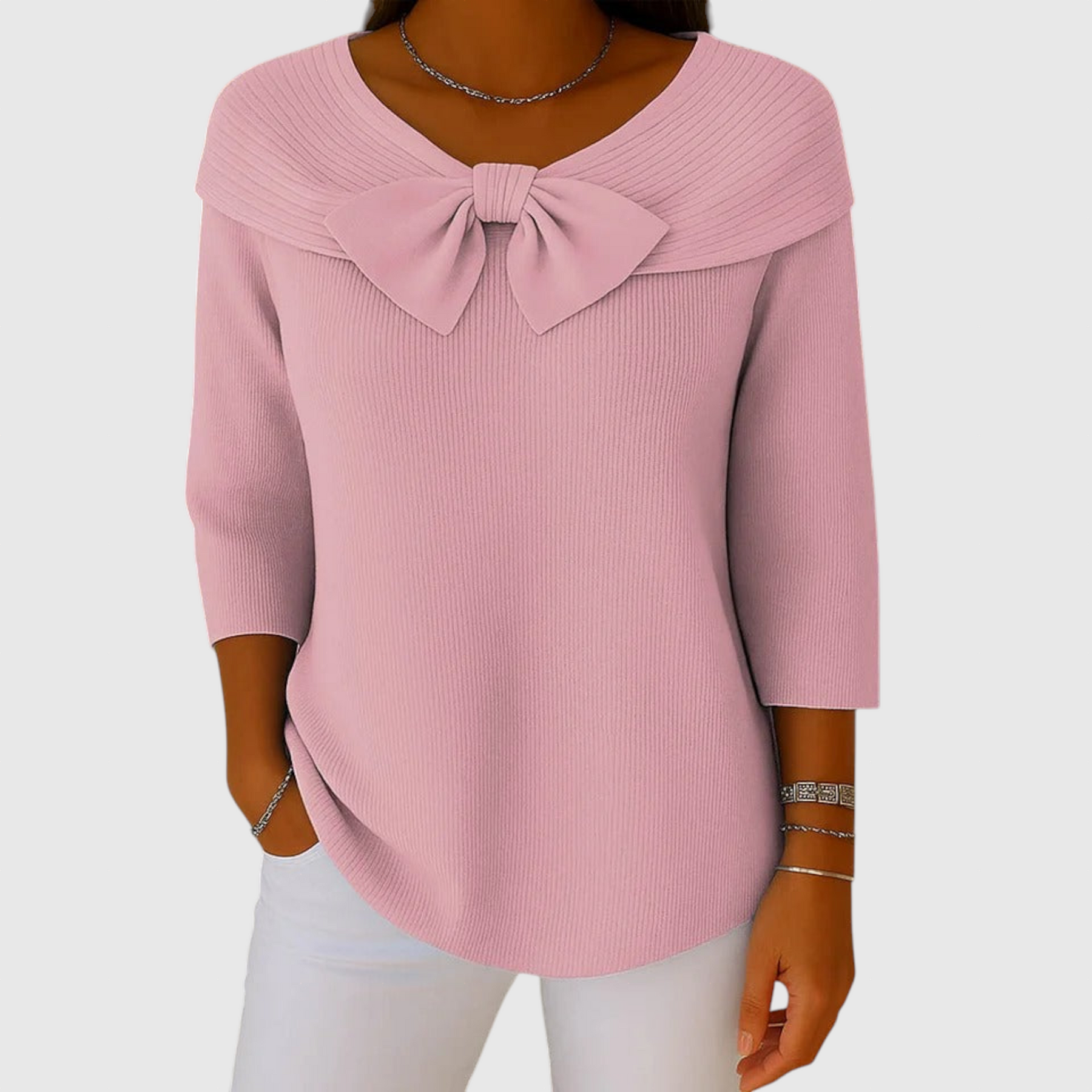 Серенна – Дамски пуловер с панделка и кръгло деколте