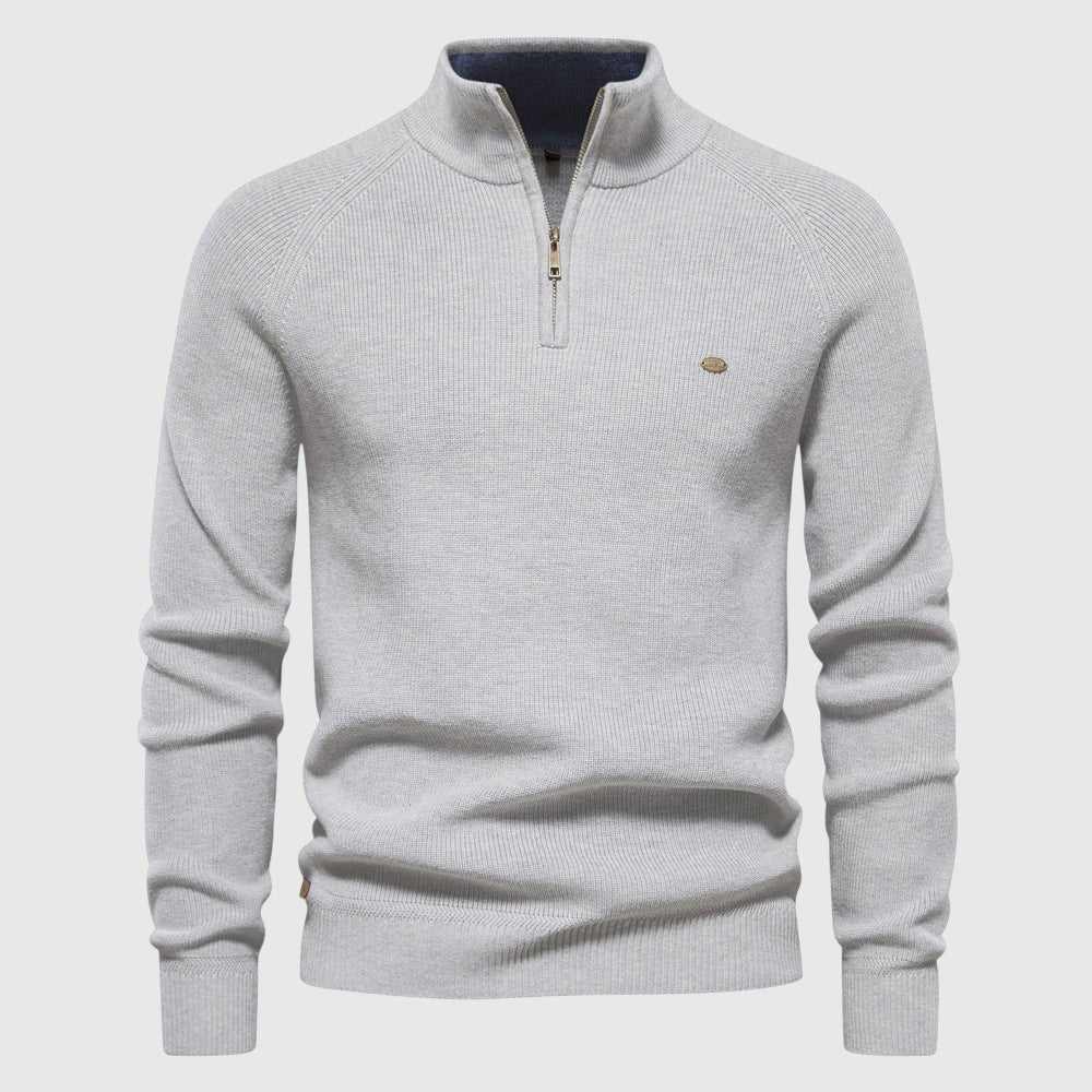 Луксозният суитшърт с цип е проектиран за мъже, които ценят изтънчения комфорт с елегантен привкус. Изработен от висококачествена материя, предлага нежно и дишащо усещане с прилягащ силует - идеален за комбиниране, елегантен ежедневен вид или за ежедневно носене.
